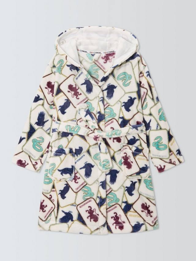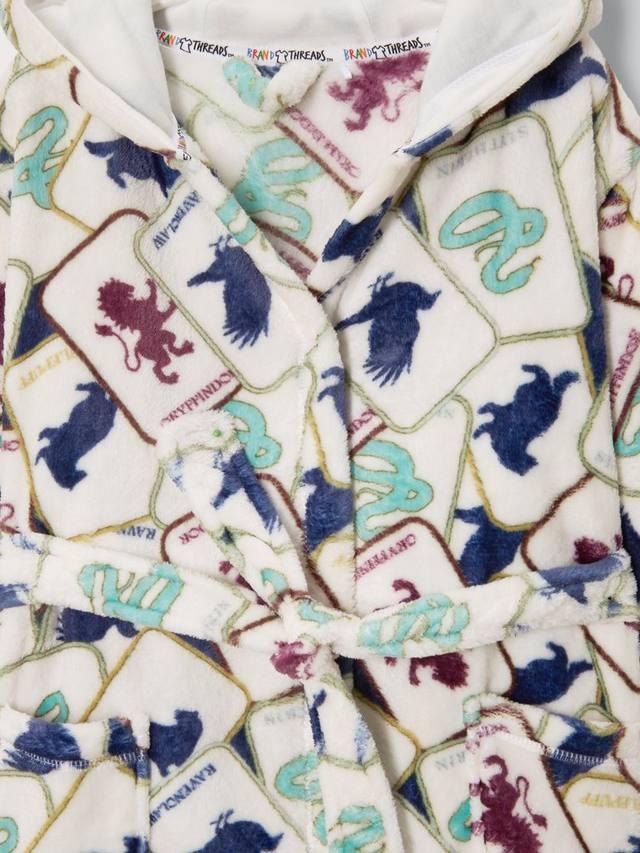 Невероятно мягкий флисовый халат с принтом в виде герба Гарри Поттера по всей поверхности, с капюшоном, завязками спереди и боковыми карманами.