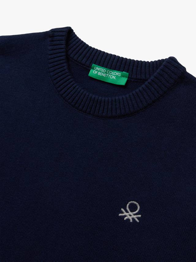 Детский хлопковый джемпер с круглым вырезом Benetton, Navy Blue