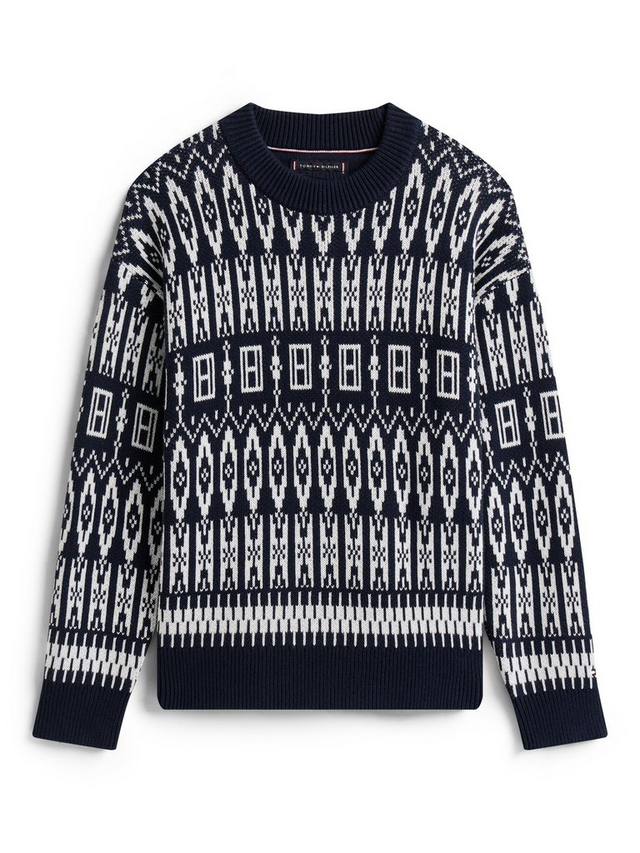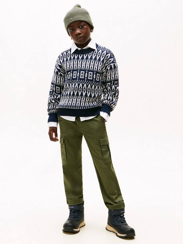 Этот уютный джемпер из чистого гребенного хлопка с традиционным узором фэр-айл добавит классического акцента в праздничный гардероб. Модель с круглым вырезом и спущенными плечами.