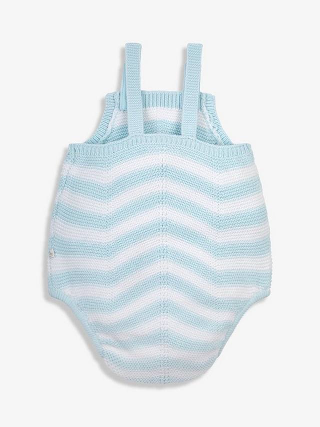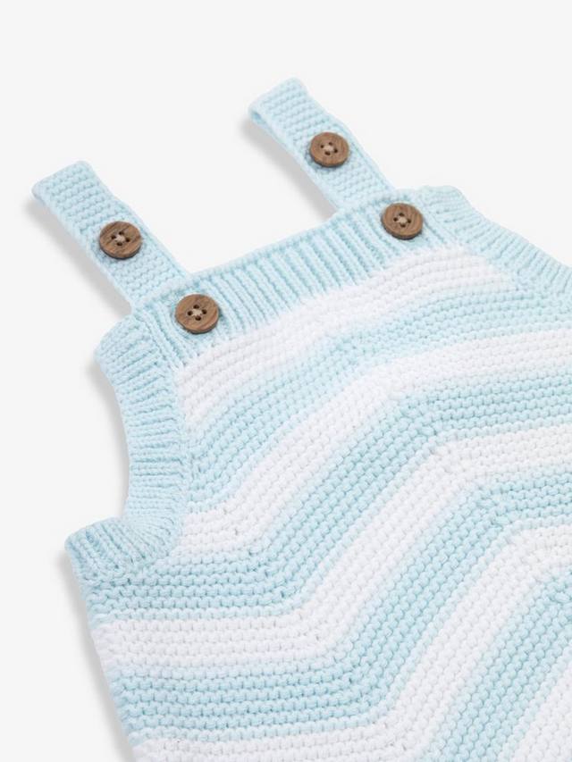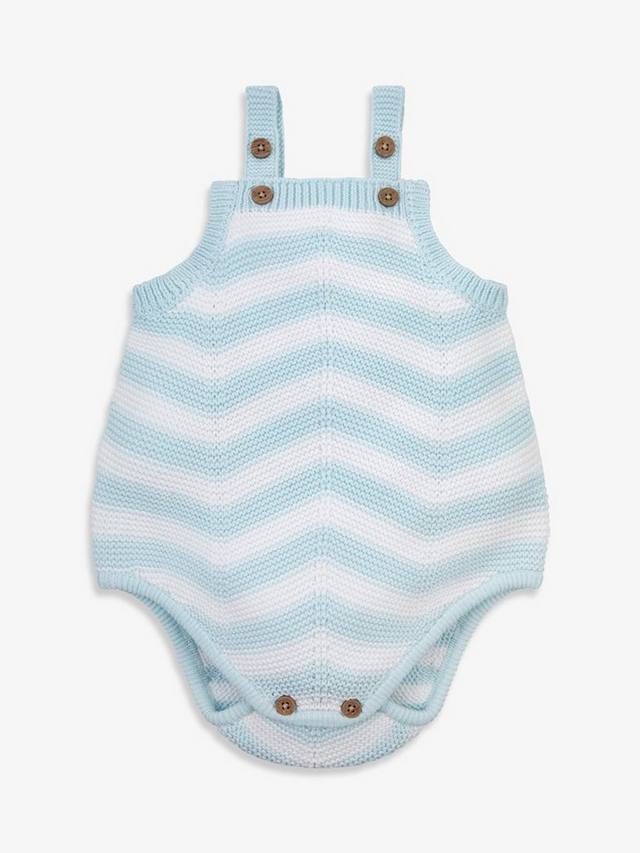 Этот детский комбинезон из хлопчатобумажного трикотажа с классическим шевронным узором оснащен застежками на пуговицы и застежками на кнопках для удобства надевания.