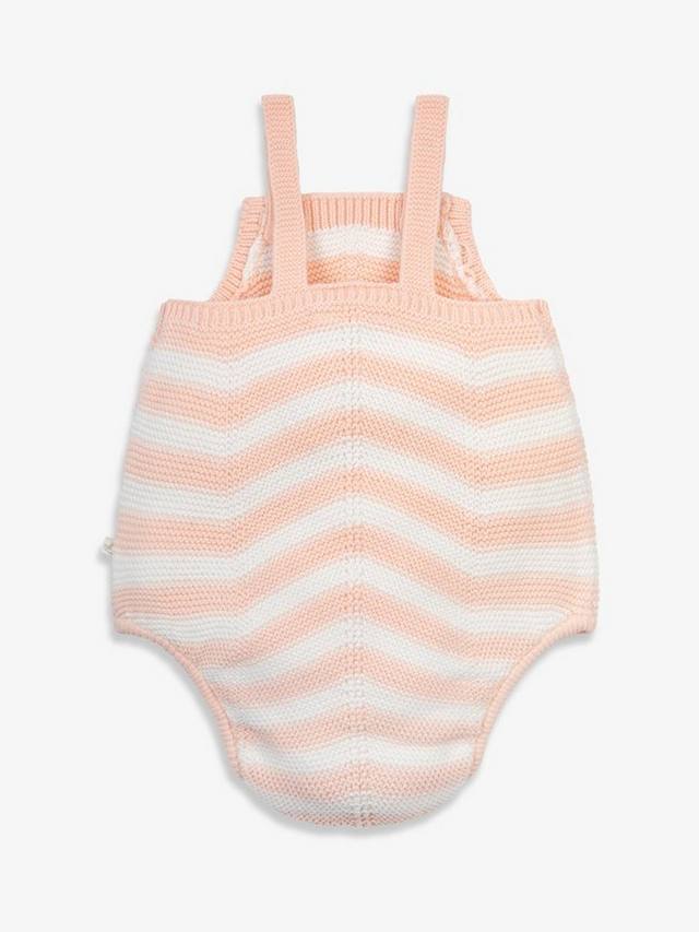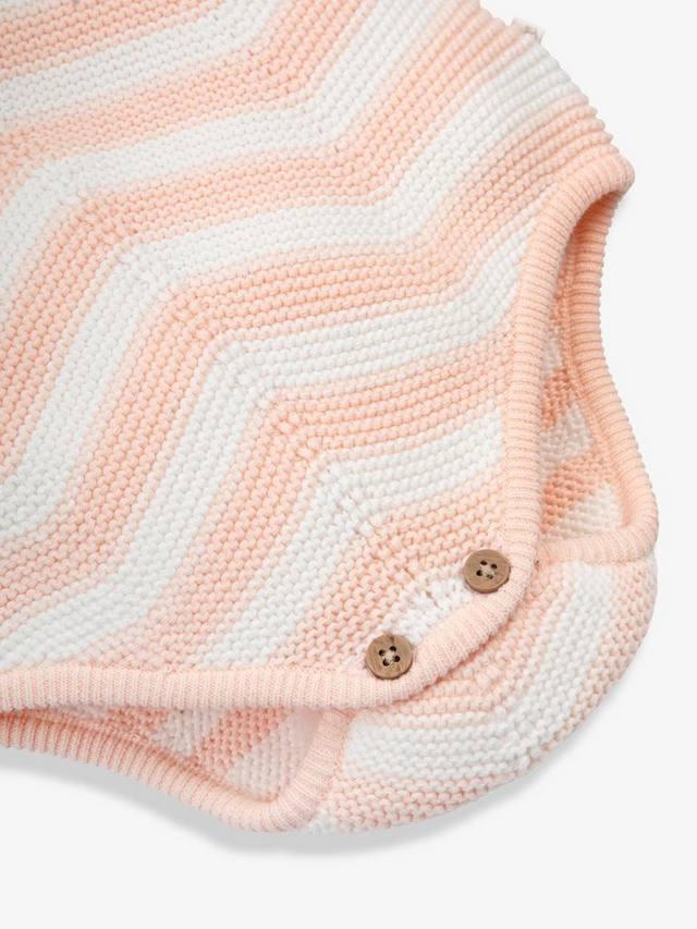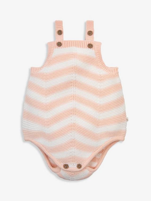 Этот детский комбинезон из хлопчатобумажного трикотажа с классическим шевронным узором оснащен застежками на пуговицы и застежками на кнопках для удобства надевания.