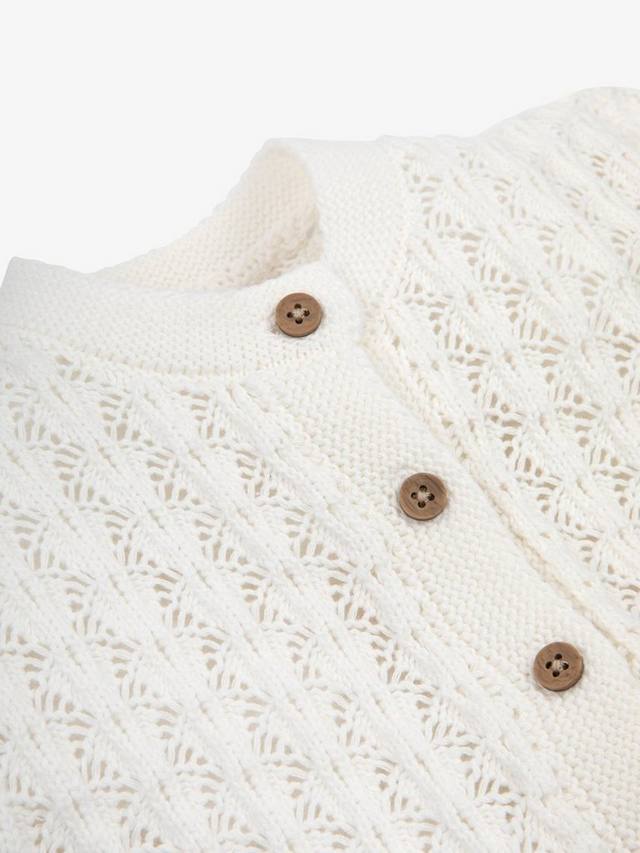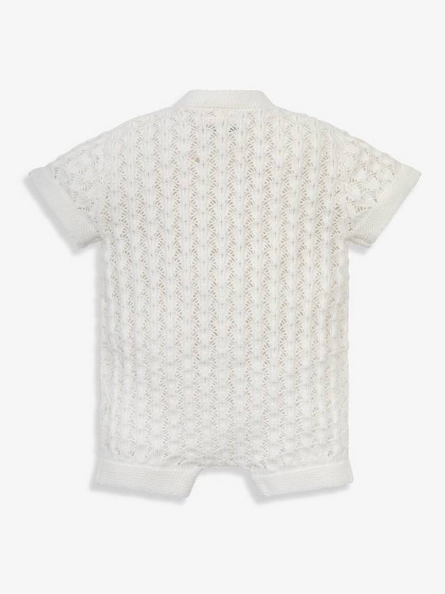 Этот элегантный комбинезон с фестончатым узором выполнен из мягкого и дышащего хлопка, что делает его идеальным для теплой погоды. Он легко надевается и застегивается на пуговицы.