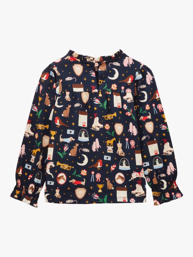 Это идеальный предмет гардероба для вашей малышки. Топ Flutter изготовлен из 100% хлопка и украшен красивым принтом, нарисованным от руки, который разбросан по всему изделию. Рукава длинные, воздушные, с присборенными манжетами, и классический вырез горловины, подчеркивающий стиль. Дополнением служат женственные оборки и застежка на пуговицу-замочную скважину сзади.