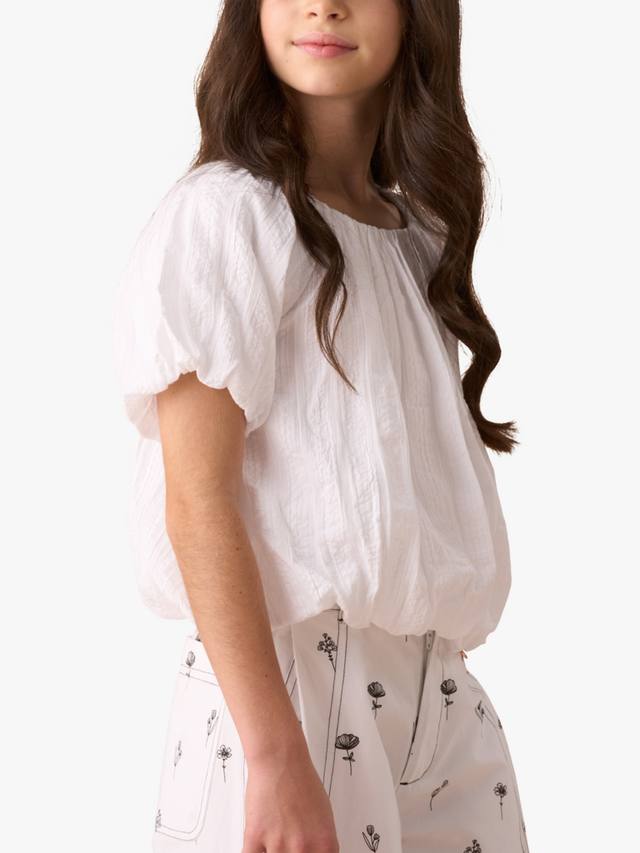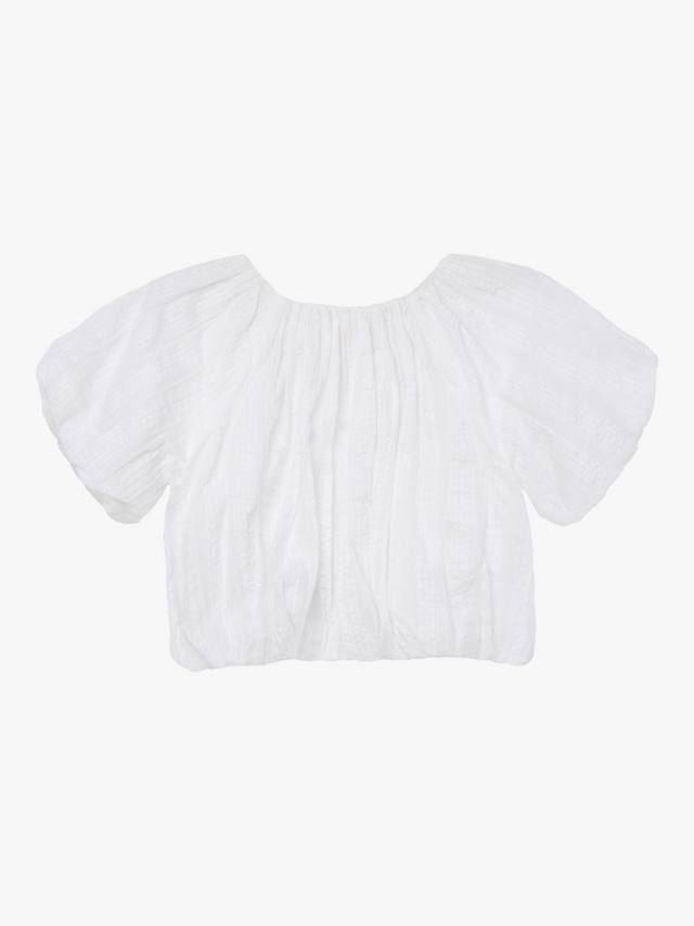 Встречайте свой новый любимый топ! Изготовлен из фактурного белого хлопка с пышными рукавами-фонариками и подолом-фонариком. Сочетается с чем угодно.