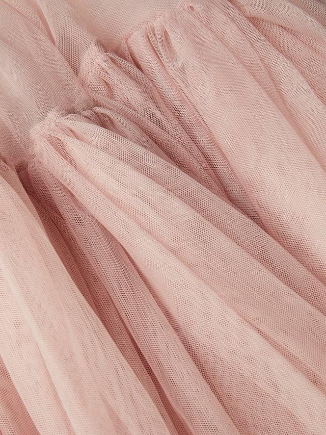 Это платье с воздушным верхним слоем из тюля, асимметричными бретелями, красивыми аппликациями в виде цветов и оборкой по подолу идеально подходит для кружения на танцполе.