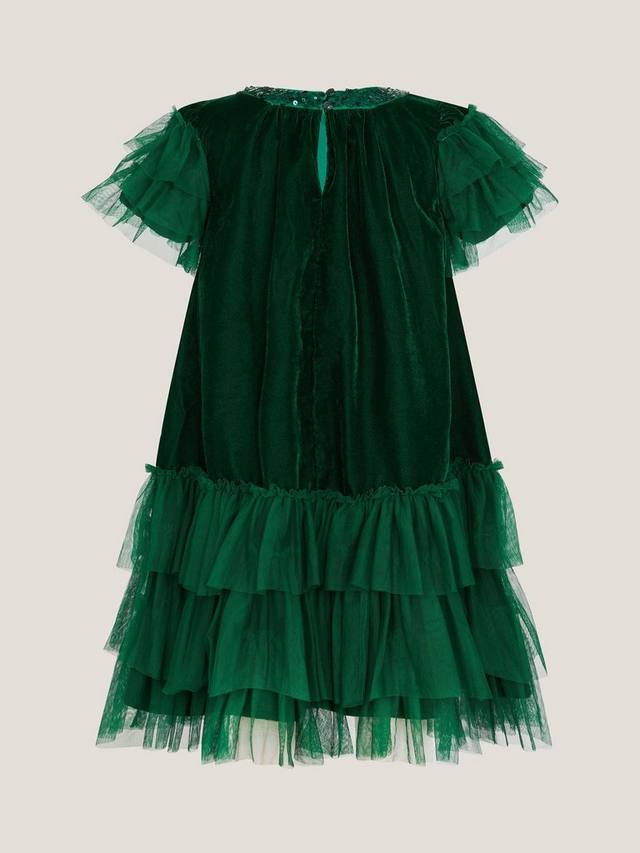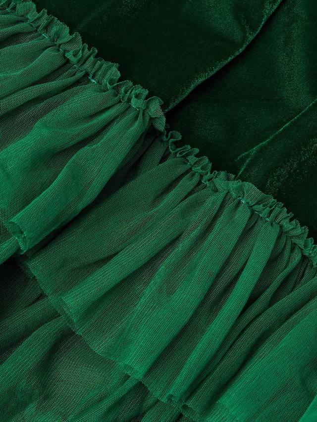 Это платье из мягкого бархата и тюля с оборками идеально подходит для рождественских праздников. Оно будет готово к любым вечеринкам в декабре и не только. Отделка из мерцающих пайеток вокруг выреза добавляет немного блеска.