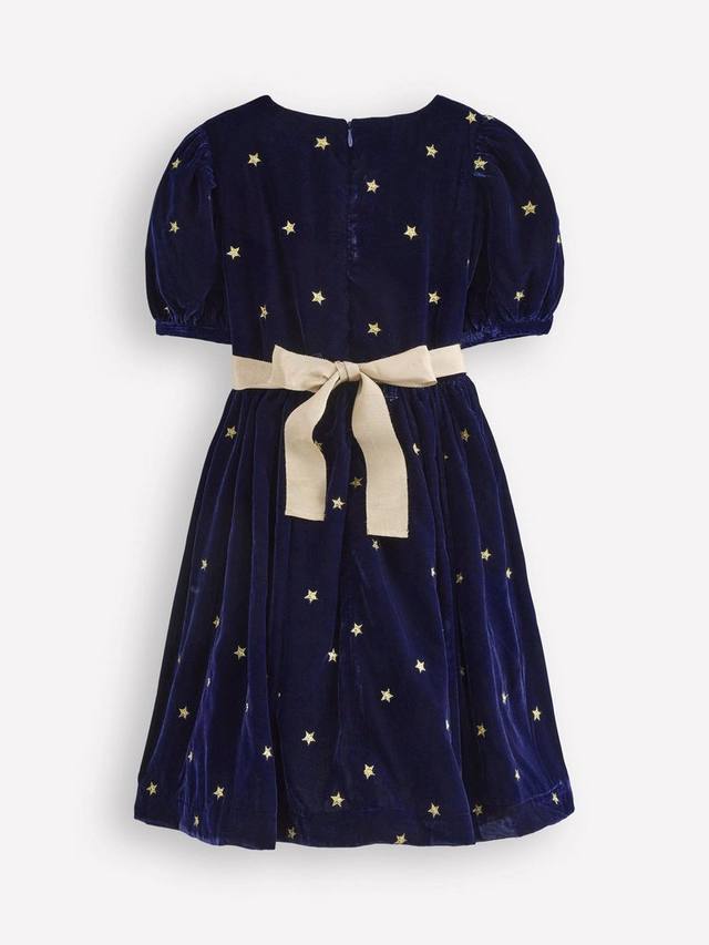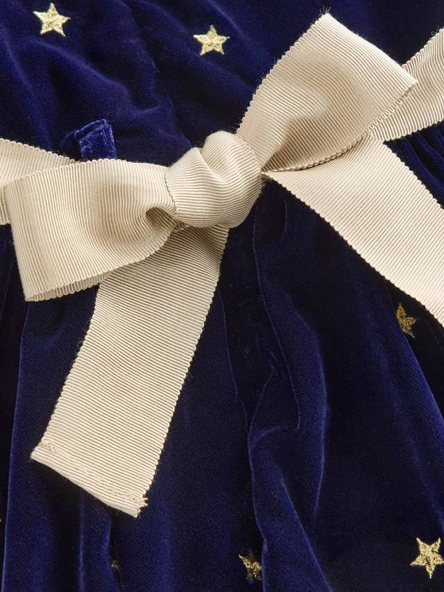 Ваша маленькая звезда может облачиться в целое созвездие в этом пышном бархатном платье для вечеринки. Пышная юбка и золотой пояс открывают перед вами безграничные возможности.