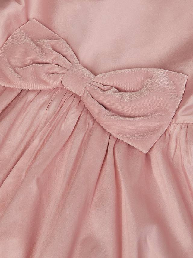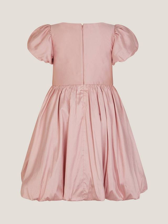 Это платье насыщенного розового цвета, цвета сахарной ваты, с рукавами-буфами и подолом-пузырьком в тон. Дополнено мягким бархатным бантом на талии.