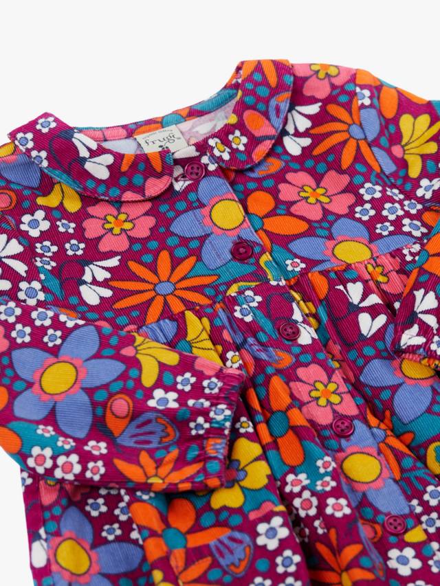 Это расклешенное платье длиной до колена с ярким цветочным узором и мягкой вельветовой тканью обеспечивает комфорт и легкость одевания благодаря практичным пуговицам спереди и длинным рукавам.