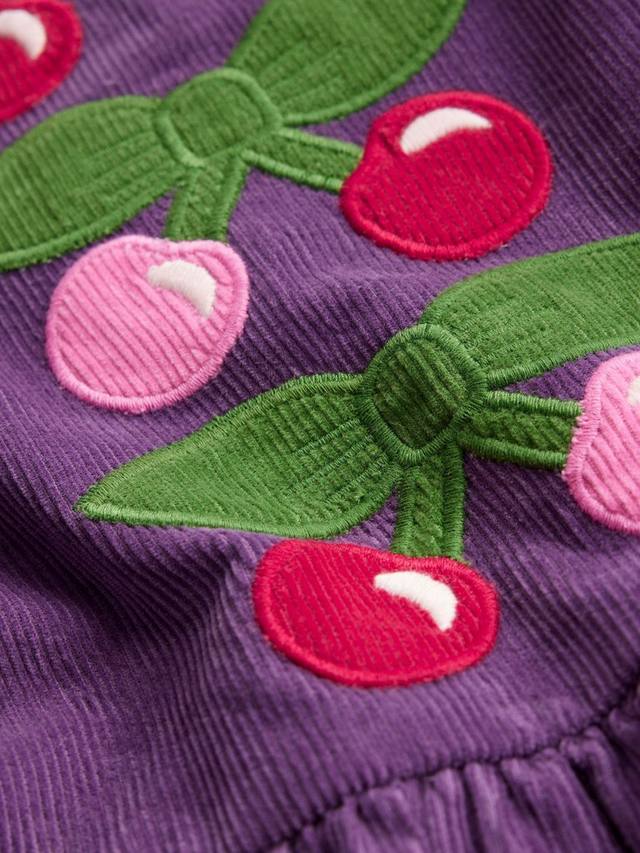 Это вельветовое платье станет их фаворитом сезона. Платье выполнено из мягкого хлопка, имеет свободную заниженную талию, оборки и игривый вишневый узор.
