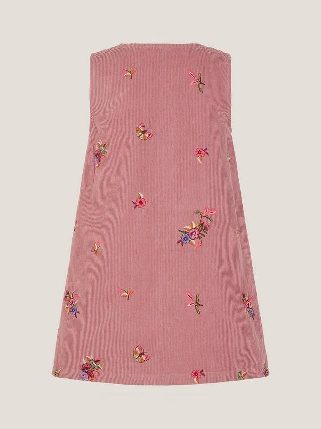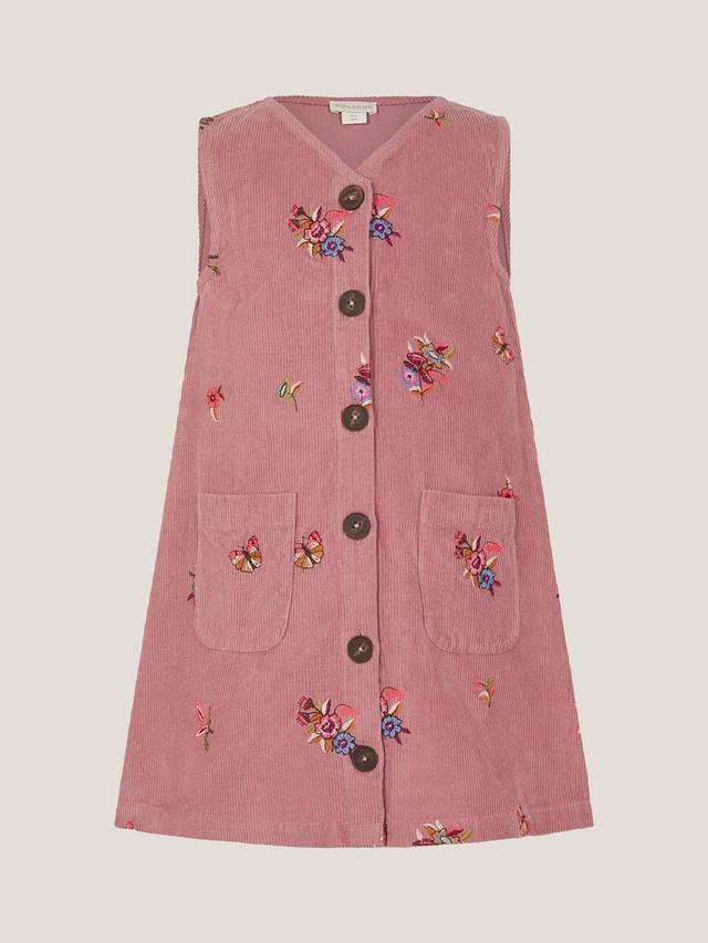 Это платье, которое можно носить в любое время года, выполнено из мягкого вельвета с вышитыми по всей поверхности яркими бабочками и цветами. V-образный вырез, застежка на пуговицы спереди и накладные карманы делают его великолепным как самостоятельным, так и поверх футболки или блузки с длинными рукавами.