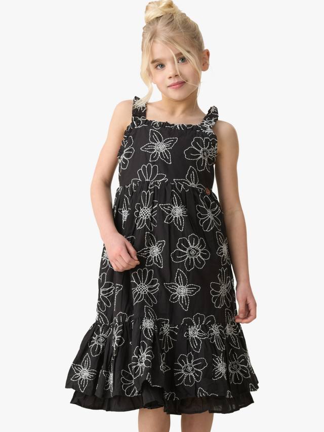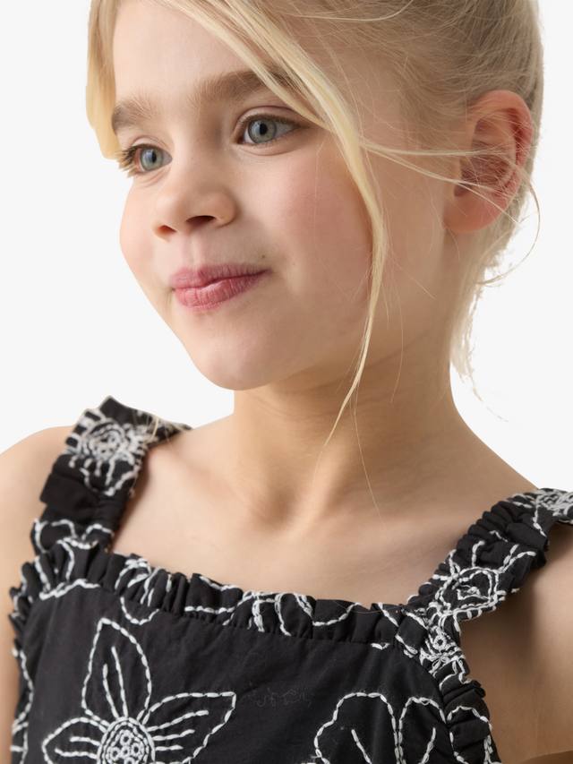 Сила цветов! Это черно-белое вышитое платье — идеальное сочетание стиля и непринужденности: изящные бретели, изысканная цветочная вышивка и струящаяся юбка. Благодаря своему непринужденному крою оно идеально подходит для летних дней!