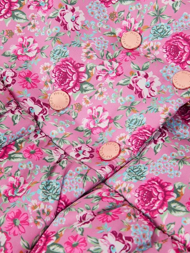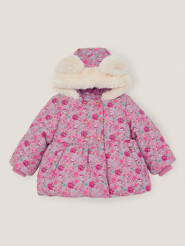 Это пальто с идеальной утеплённой подкладкой, защищающей от холода и создающей уют внутри, украшено винтажным цветочным принтом и двубортными пуговицами. Супермягкие плюшевые ушки вокруг капюшона добавляют ещё больше очарования.