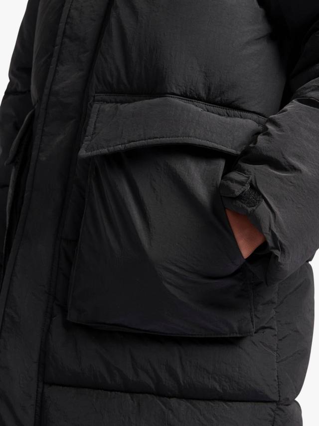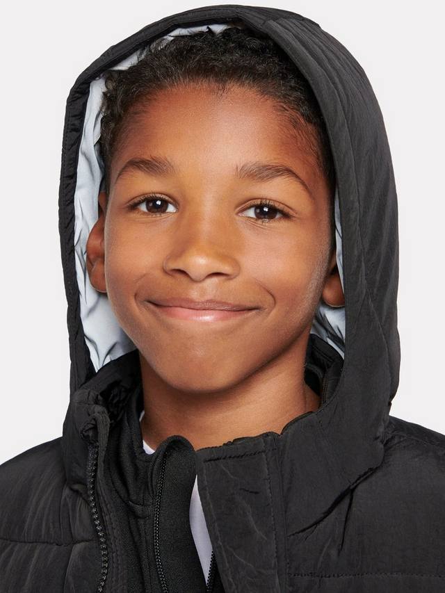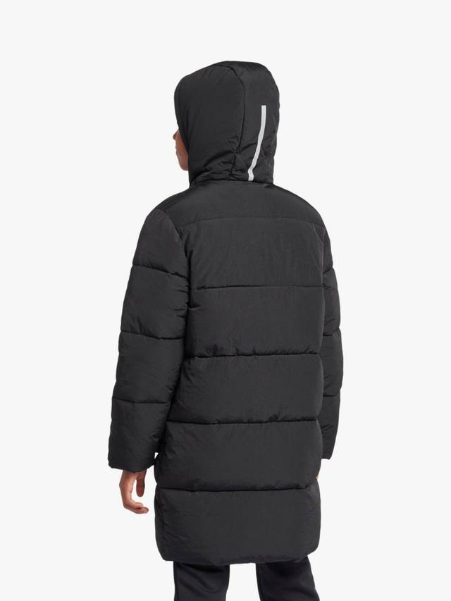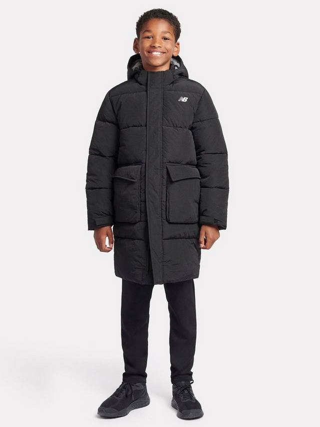 Этот пуховик с капюшоном от New Balance, выполненный из нейлона таслон и имеющий удлиненный крой, обеспечит тепло и уют на игровой площадке.