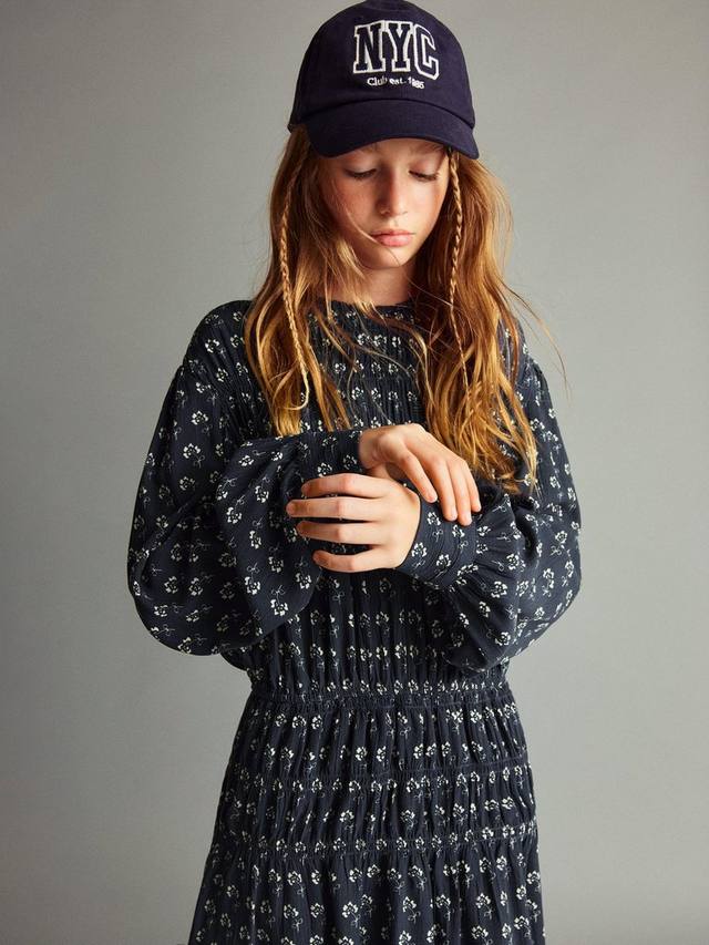 Это мини-платье А-силуэта с цветочным узором, длинными рукавами и удобной хлопковой подкладкой станет практичным выбором для игр и исследований.