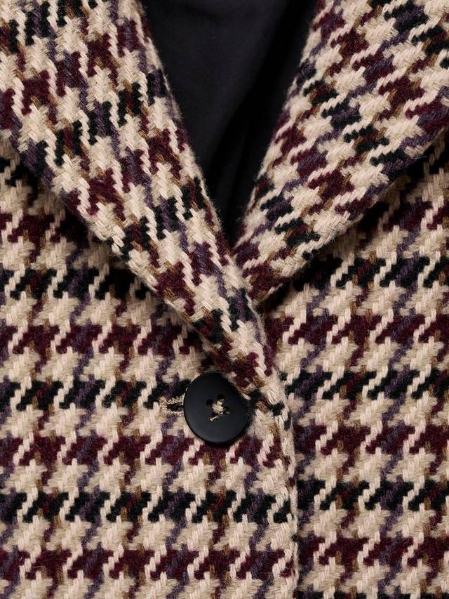Это длинное пальто с узором собачья лапка добавит элегантности любому наряду, предлагая стильный комфорт для напряженных школьных дней или особых случаев.