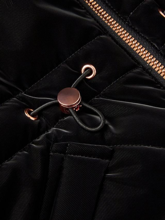 В школу готов! Мягкое и прочное, оно защитит от холода, утепленное пальто с ромбовидной стежкой и роскошным капюшоном из искусственного меха. Застежка на золотистую молнию и эластичные пуговицы на талии.
