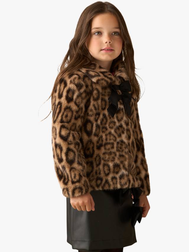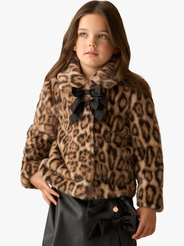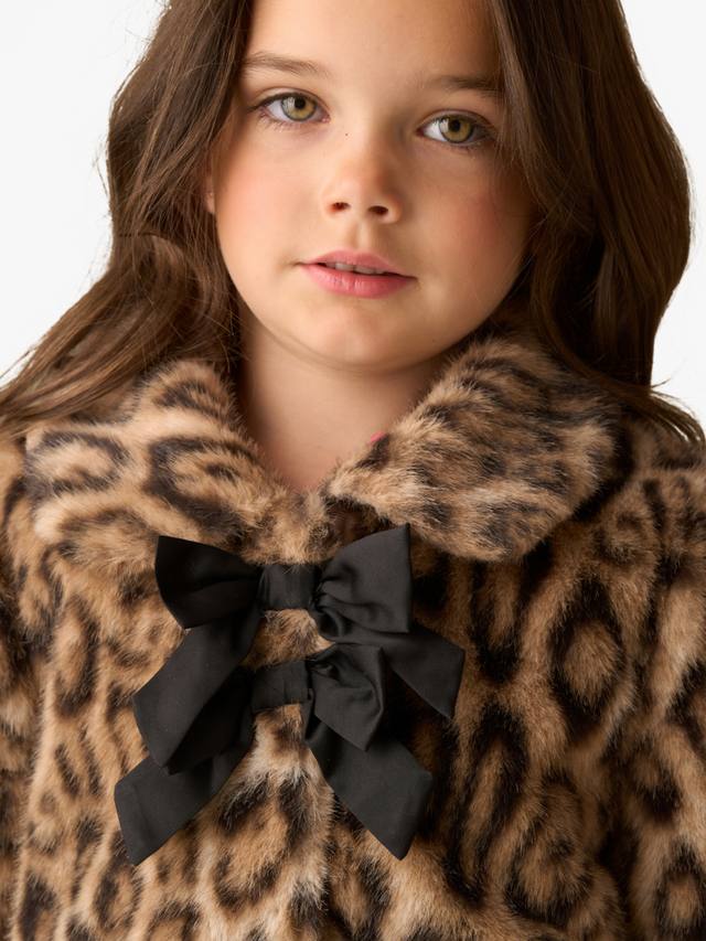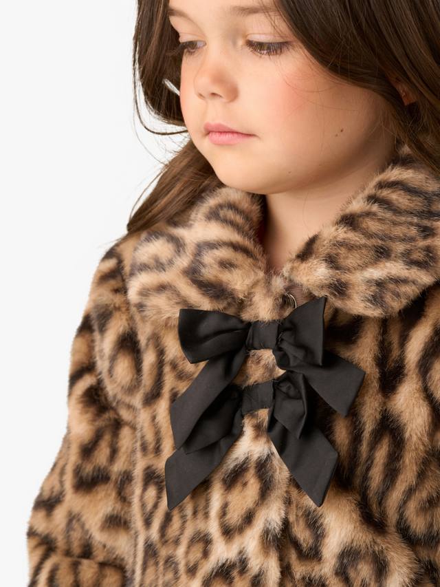 Детское пальто с бантом из леопардового меха Angel & Rocket, Brown