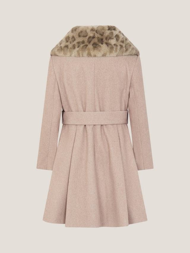 Великолепный слой, который можно носить поверх праздничных и торжественных образов. Это пальто свободного силуэта с пушистым воротником с леопардовым принтом. Застегивается на пуговицы спереди.