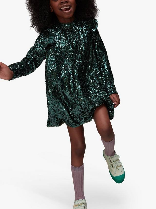 Добавьте блестящий акцент к их праздничному образу с этим сверкающим платьем Alma с пайетками от Whistles. Длинные рукава и оборки на плечах идеально сочетаются с любимыми туфлями-лодочками для вечеринок.