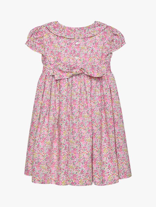 Это платье идеально подходит для вечеринок. Оно сшито из ткани с принтом Эмма и Джорджина от Liberty, дизайн которой основан на двух мелких плотных цветочных узорах. Изящная сборка с нежной цветочной вышивкой спереди, красивые рукава-фонарики, изящный ивовый воротник и бант на завязке сзади.