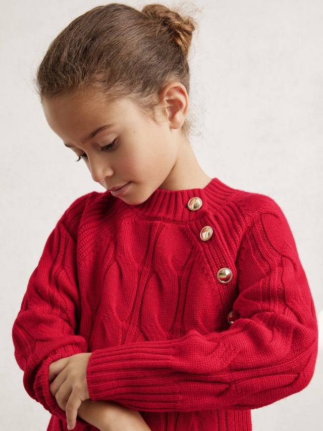 Платье Harper, выполненное из 100% шерсти, отличается объемной вязкой, которая придает силуэту текстуру и глубину. Высокий вырез горловины и полированные золотистые пуговицы на плечах придают изысканность этому уютному изделию.