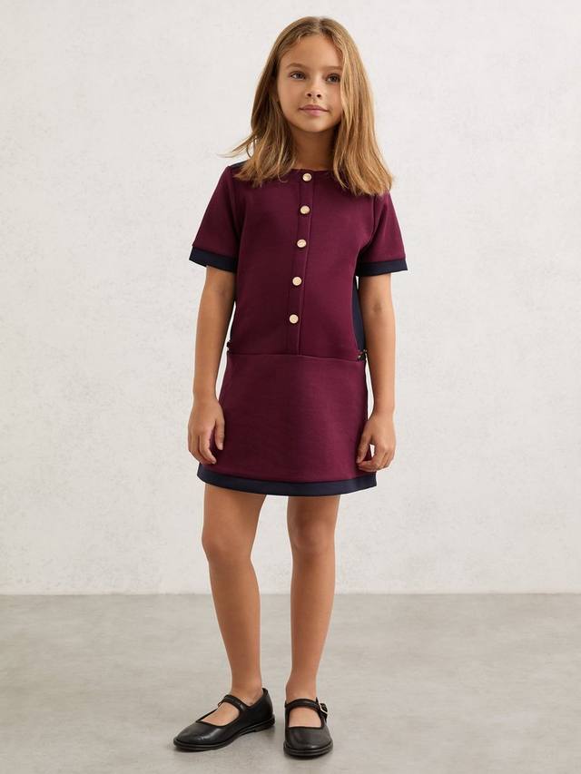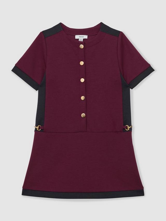Платье Levi выполнено из трикотажного полотна интерлок, что обеспечивает мягкий силуэт и комфорт. Контрастные вставки создают эффектный цветовой блок, а полированные золотистые пуговицы спереди и изящные детали в виде удил по бокам создают образ, вдохновленный конным спортом.