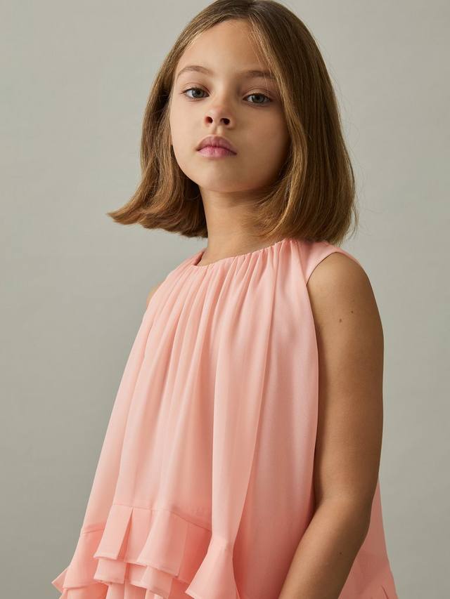 Это многоярусное платье от Reiss, идеально подходящее для особых случаев, выполнено из легкой шифоновой ткани с оборкой для создания веселого и игривого образа.
