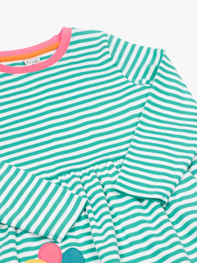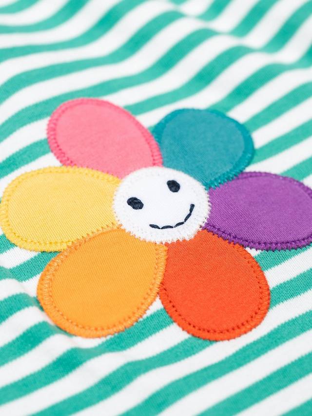Это платье для фигурного катания сочетает в себе яркие полоски и цветочную аппликацию, обеспечивая комфорт для активных дней и свободу для игр. Длинные рукава и мягкий органический хлопок обеспечивают универсальность в любое время года.