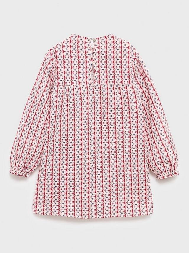 Это платье А-силуэта длиной до колена с длинными рукавами и ярким геометрическим полосатым узором сочетает в себе комфорт и стиль для активных дней. Изготовлено из мягкой хлопковой смеси для свободы движений.