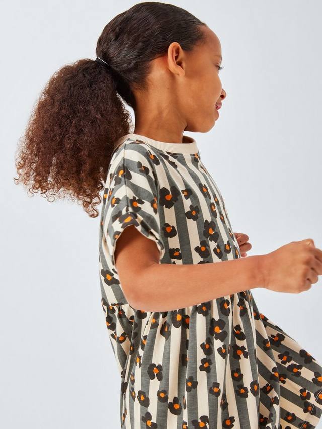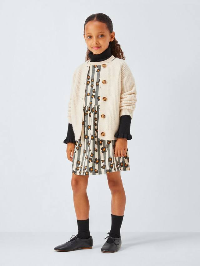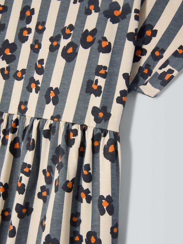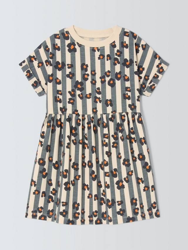 Платье из ткани с высоким содержанием хлопка, сочетающее в себе яркую цветную полоску и принт с дикими животными.