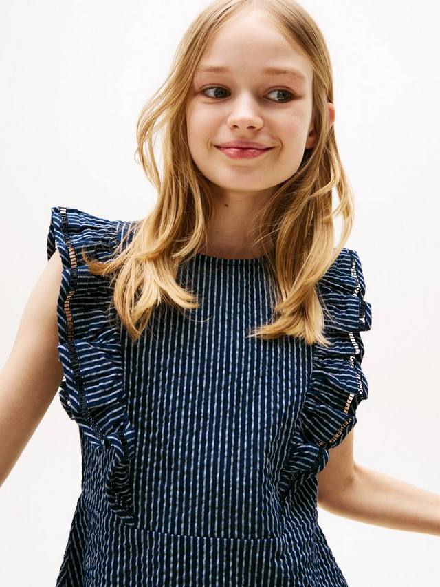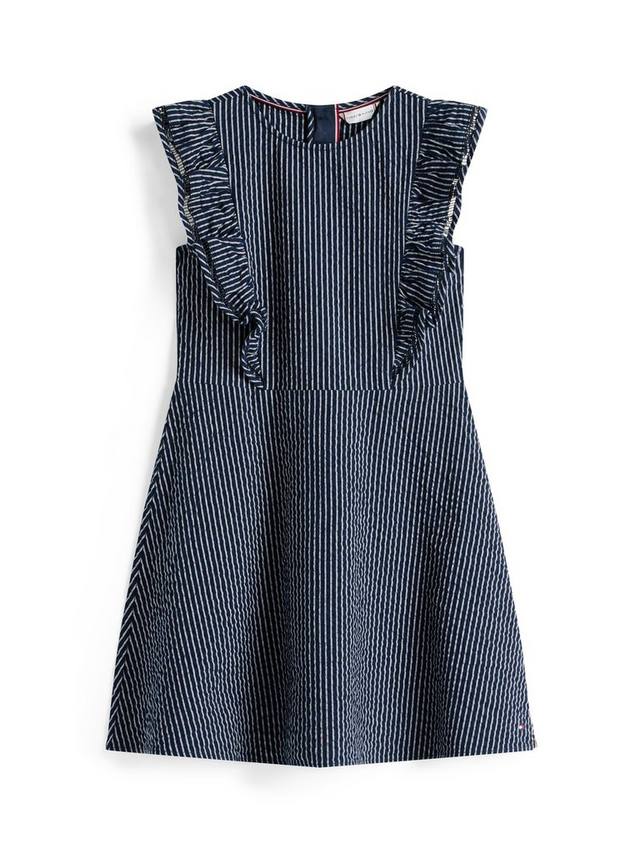 Это платье Tommy Hilfiger из чистого хлопкового сирсакера создает ощущение легкости, а оборки добавляют игривости. Круглый вырез, оборки и потайная молния на спине.
