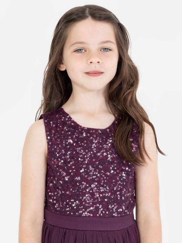 Это платье миди идеально подходит для особых случаев и обещает день бесконечных кружений. Круглый вырез на лифе без рукавов украшен мерцающими пайетками и покрыт мягкой фатином для защиты нежной кожи. Пояс из атласной ленты завязывается сзади красивым бантом, добавляя очаровательную нотку. Дополните это платье миди сверкающими туфлями и повязкой на голову, чтобы создать волшебный, завораживающий, сказочный образ.