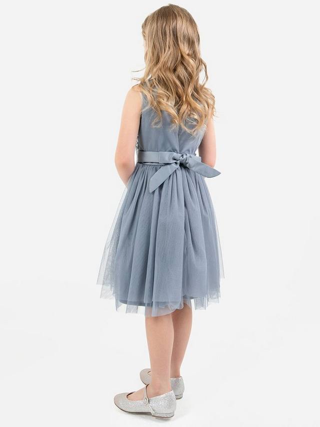 Это платье миди идеально подходит для особых случаев и обещает день бесконечных кружений. Круглый вырез на лифе без рукавов украшен мерцающими пайетками и покрыт мягкой фатином для защиты нежной кожи. Пояс из атласной ленты завязывается сзади красивым бантом, добавляя очаровательную нотку. Дополните это платье миди сверкающими туфлями и повязкой на голову, чтобы создать волшебный, завораживающий, сказочный образ.