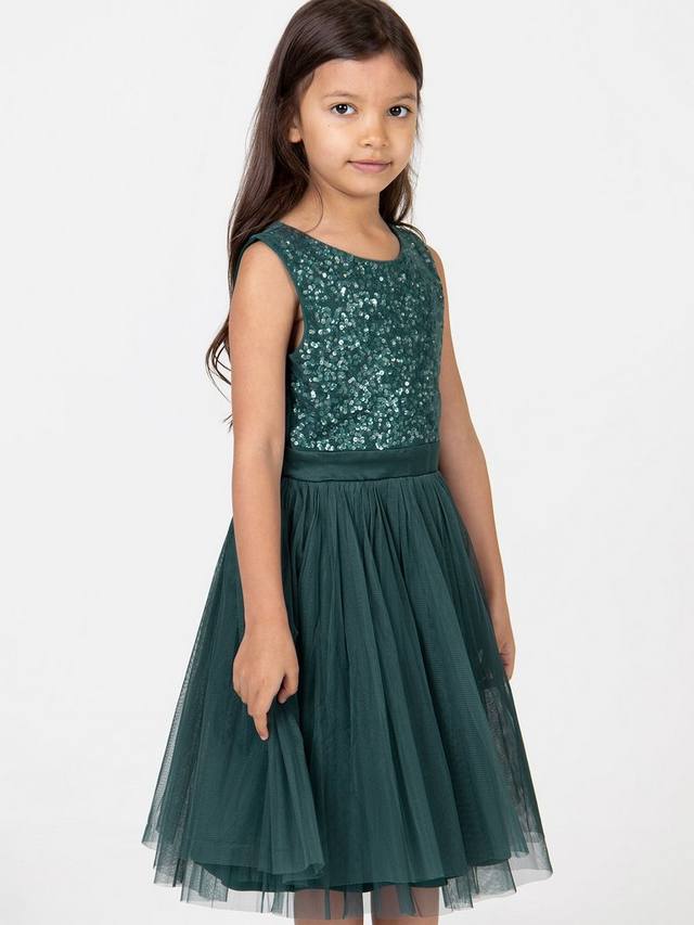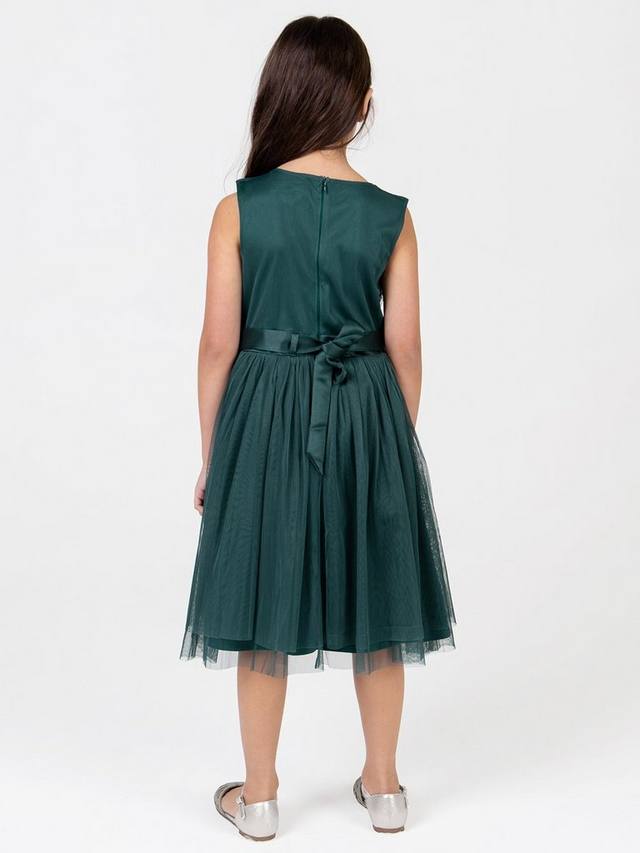 Это платье миди идеально подходит для особых случаев и обещает день бесконечных кружений. Круглый вырез на лифе без рукавов украшен мерцающими пайетками и покрыт мягкой фатином для защиты нежной кожи. Пояс из атласной ленты завязывается сзади красивым бантом, добавляя очаровательную нотку. Дополните это платье миди сверкающими туфлями и повязкой на голову, чтобы создать волшебный, завораживающий, сказочный образ.