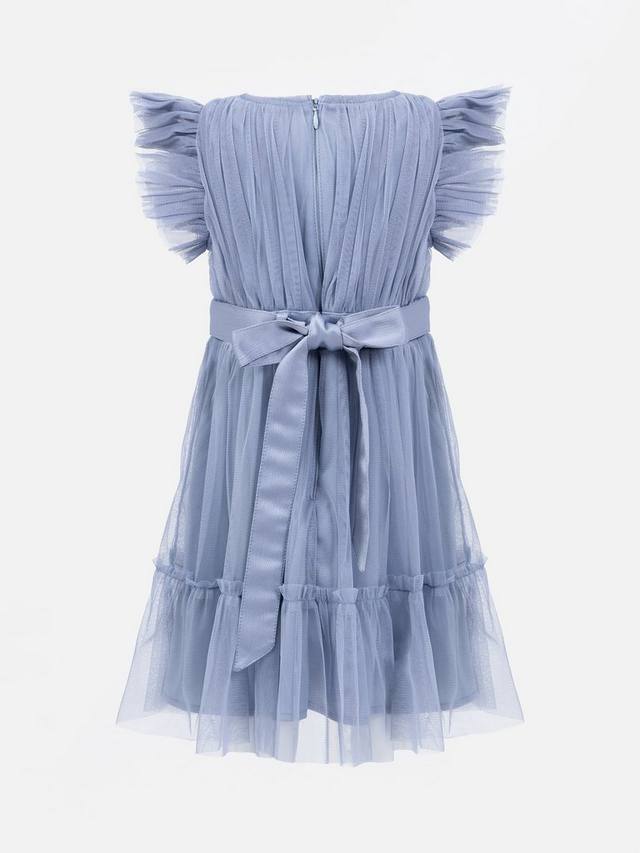 Это очаровательное платье миди из мягкого тюля идеально подходит для особых случаев, от свадьбы до дня рождения. Изящная оборка образует едва заметный рукав-крылышко, а атласный пояс, завязывающийся на спине элегантным бантом, добавляет образу ещё больше очарования. Мягкая подкладка обеспечивает комфорт в течение всего дня. Дополните ансамбль сверкающими туфлями и золотым оголовьем для создания изысканного, но очаровательного образа.