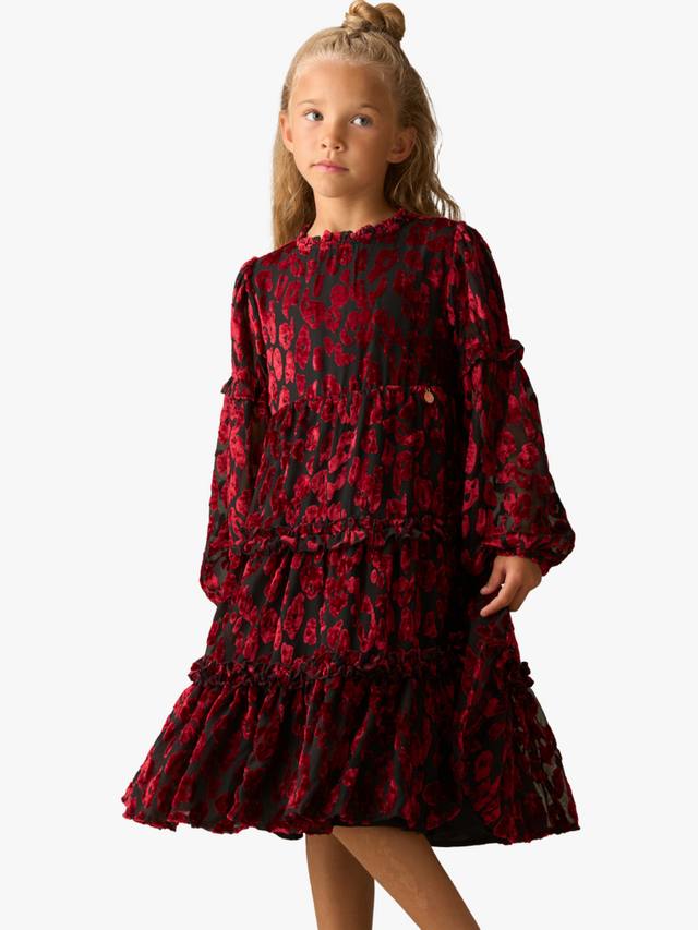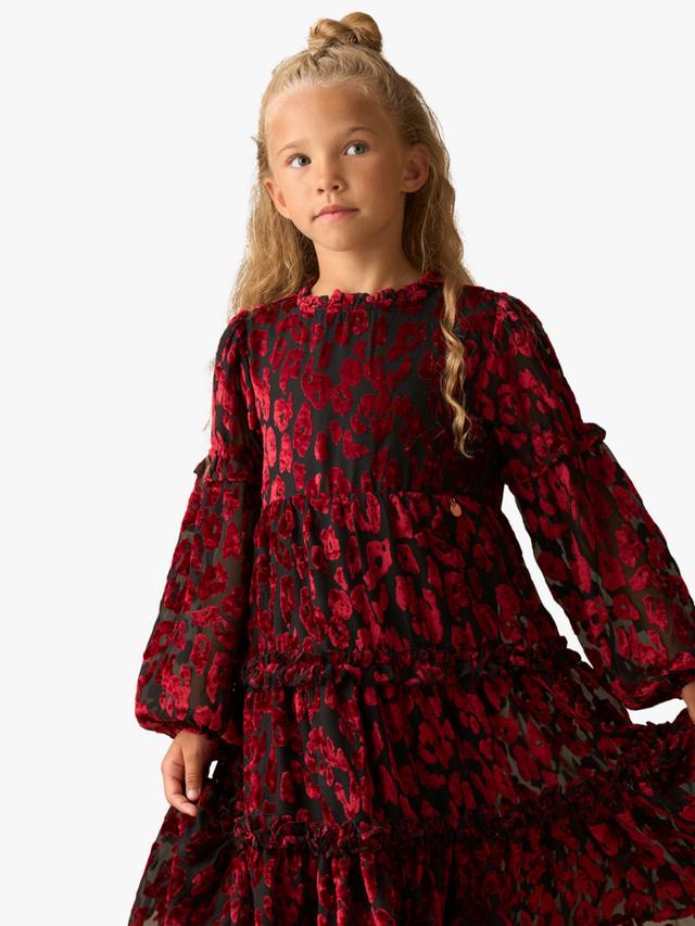 Вступите в праздничный сезон стильно в этом роскошном многоярусном платье из красного бархата. Неизменный рубиновый оттенок, длинные рукава и пышная юбка – это эффектное платье, идеально подходящее для любого торжества.