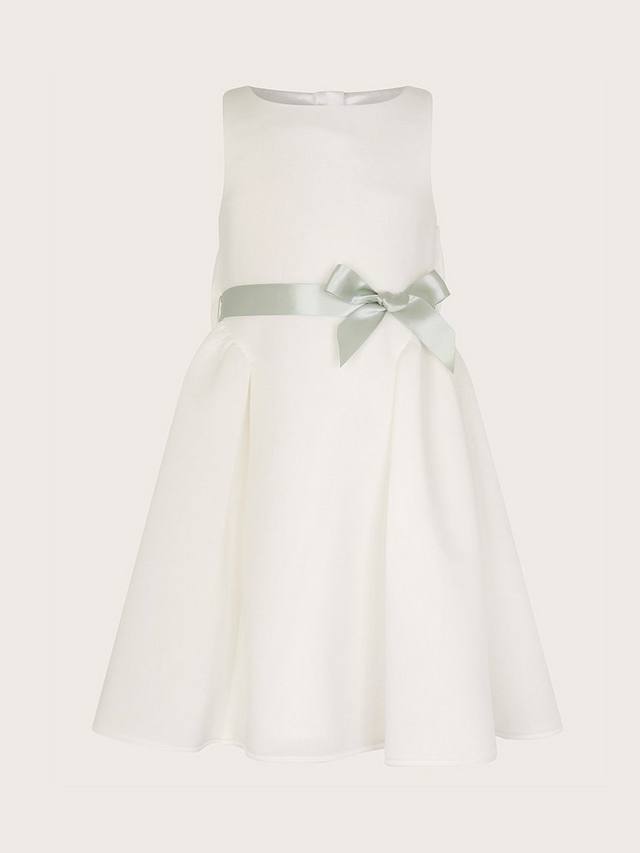 Готово к празднику. Платье Holly от Monsoon выполнено из дюшес-твила с поясом с цветочной аппликацией и ниспадающим бантом на спине. Расклешенная юбка со складками застегивается на пуговицы сзади.