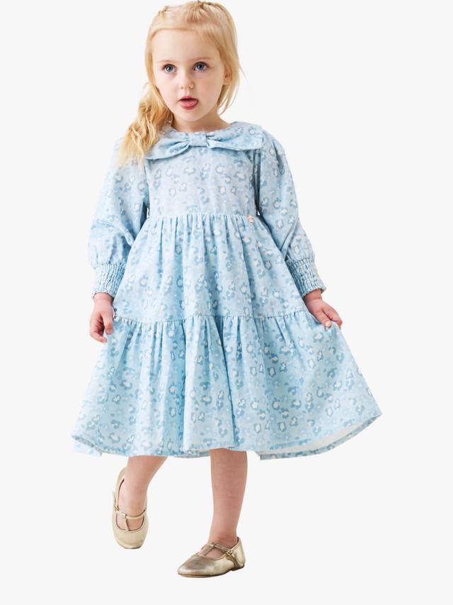 Детское платье с бантом и воротником-стойкой Angel & Rocket, Blue