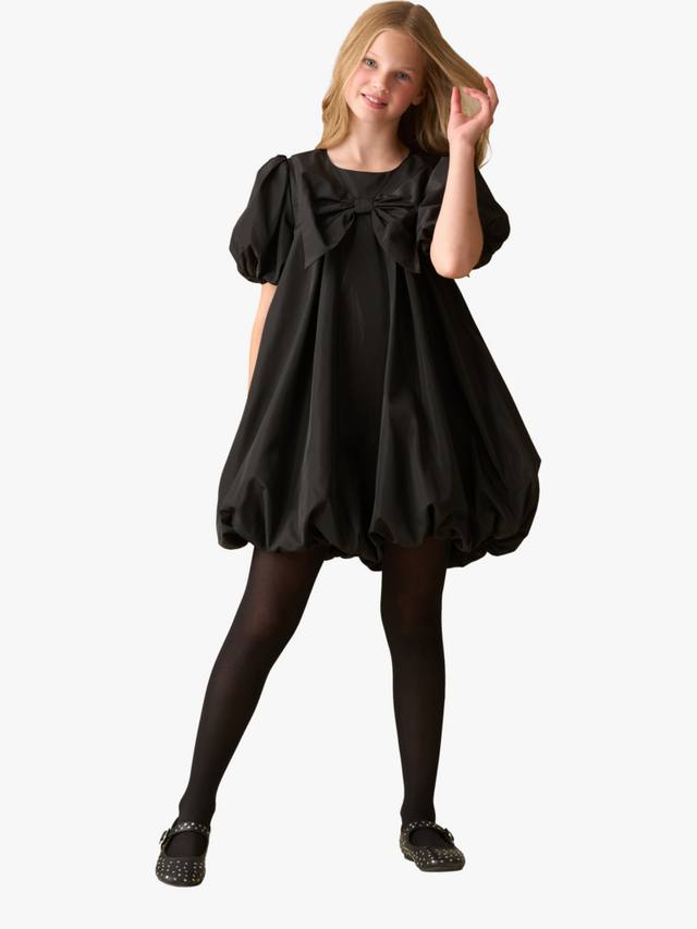 Идеальное сочетание игривости и шика: это платье с подолом-фонариком может стать нашим фаворитом в этом сезоне! Классический чёрный крой, объёмный силуэт, пышный подолом и рукавами, а также большой бант добавят игривого очарования любому случаю.