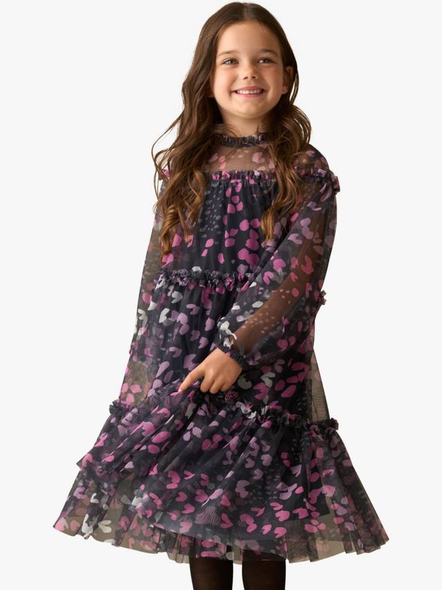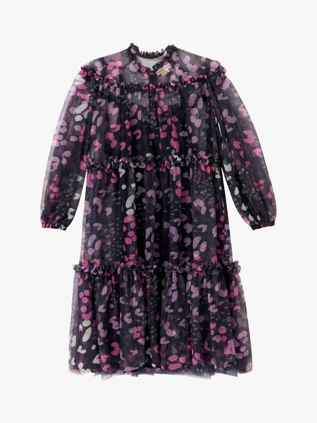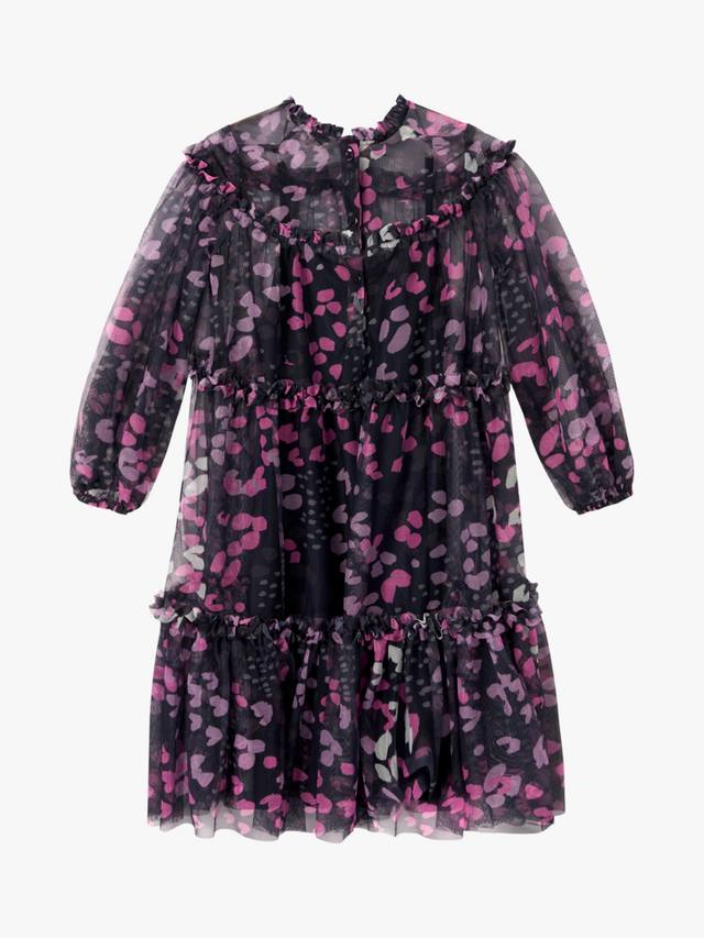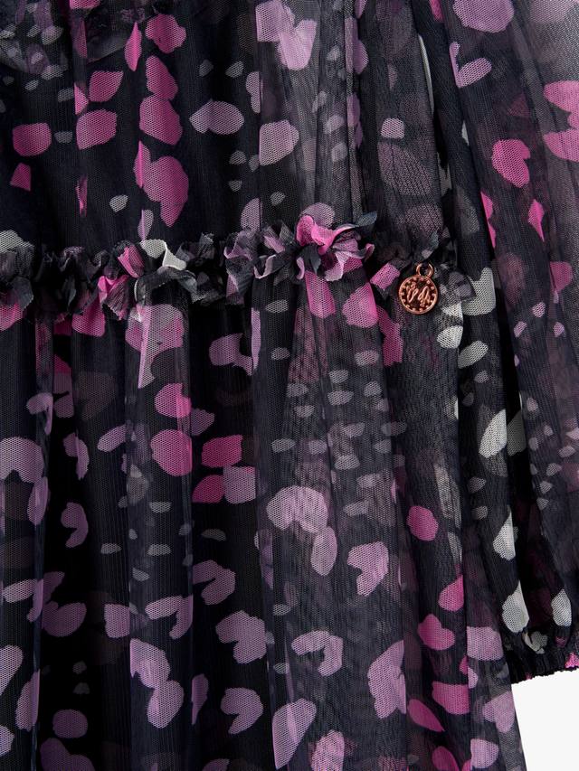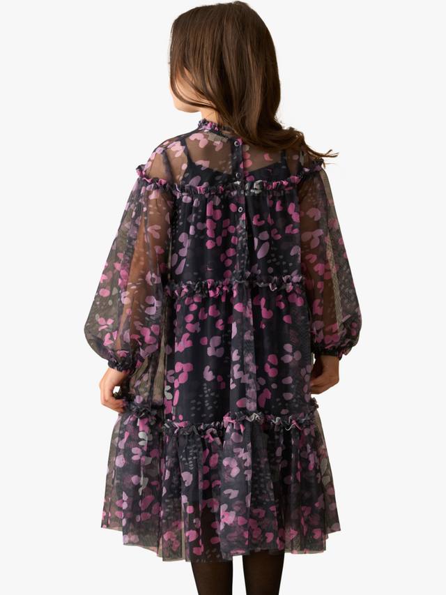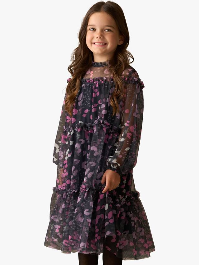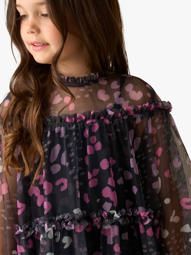 Прекрасный принт в насыщенных чернильных тонах, напечатанный на мечтательной прозрачной сетчатой ткани с широким силуэтом.