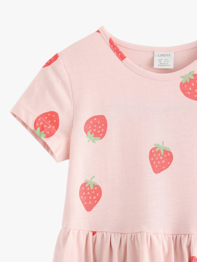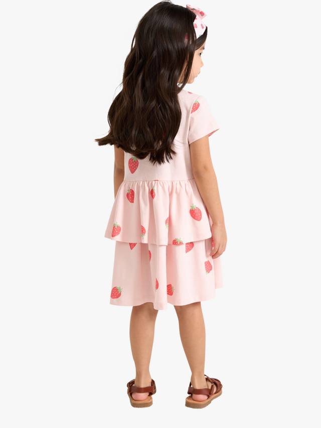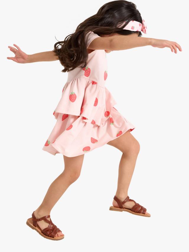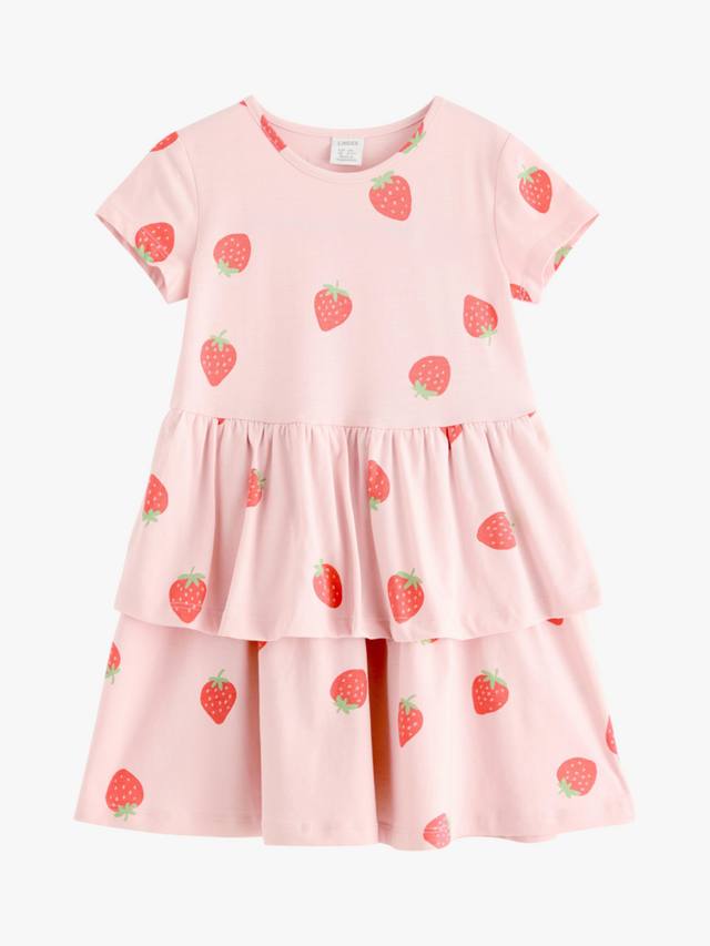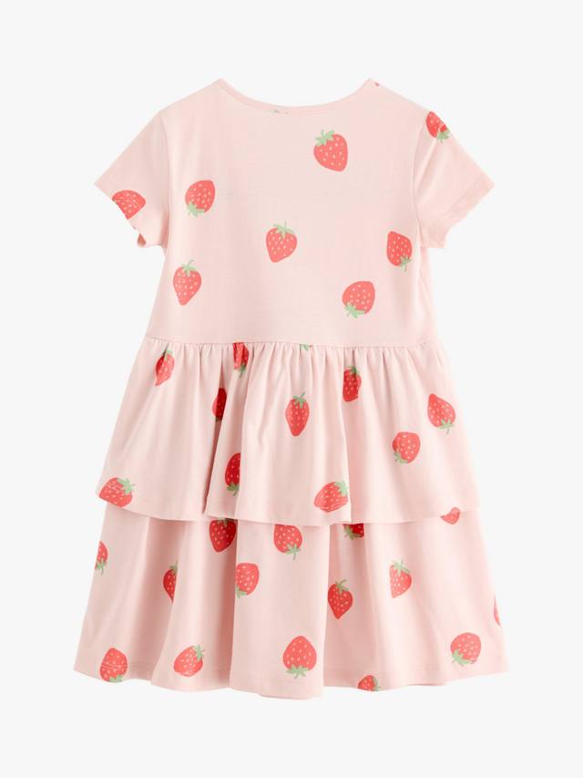 Летние прогулки заслуживают только самых жизнерадостных платьев, и это мягкое хлопковое платье с игривым клубничным принтом – настоящее жизнерадостное украшение. Короткие рукава и юбка с воланами – идеальное решение для игр на солнце.