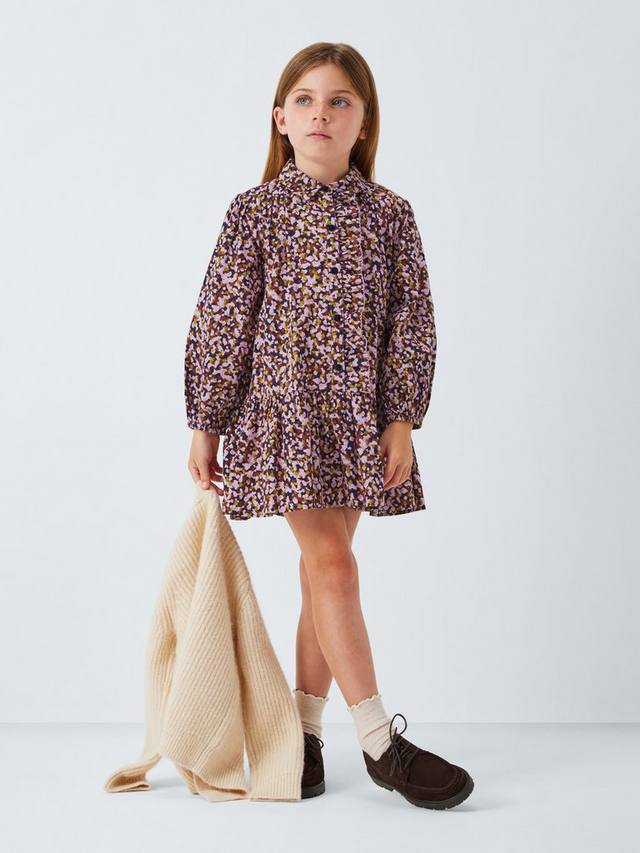 Платье для взрослых с абстрактным принтом в крапинку. Изготовлено из чистого хлопка, имеет элегантный рубашечный воротник, застежку на пуговицы спереди и эластичные манжеты на запястьях, чтобы зафиксировать рукава на месте.