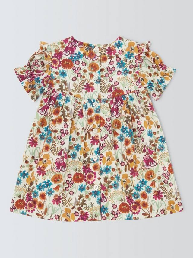 Платье из чистого хлопка с ярким цветочным принтом по всей поверхности. Защипы на лифе, а также оборки на плечах и рукавах создают привлекательный штрих. Пуговицы по центру спины для удобства надевания и снимания. Доступно подходящее детское платье