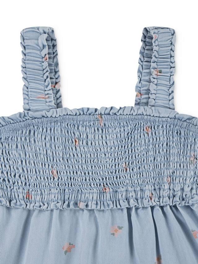 Это платье свободного расклешенного кроя с присборенным лифом станет идеальным вариантом для летнего гардероба. Платье украшено нежным принтом и дополнено удобными эластичными бретелями, поэтому станет незаменимым предметом гардероба в солнечный день.