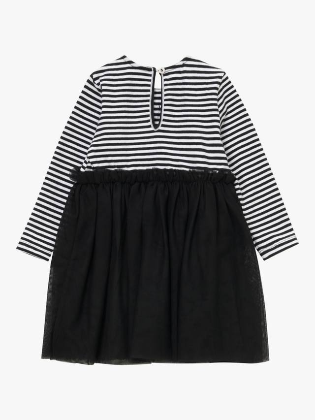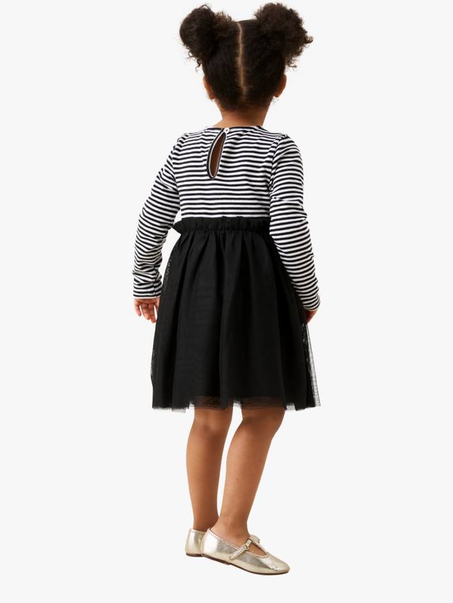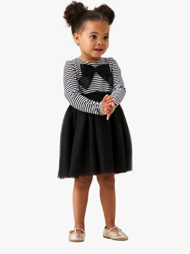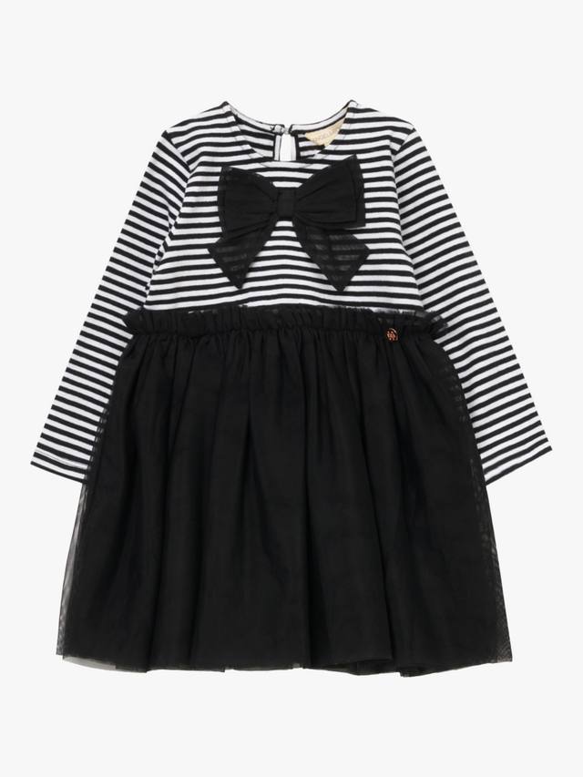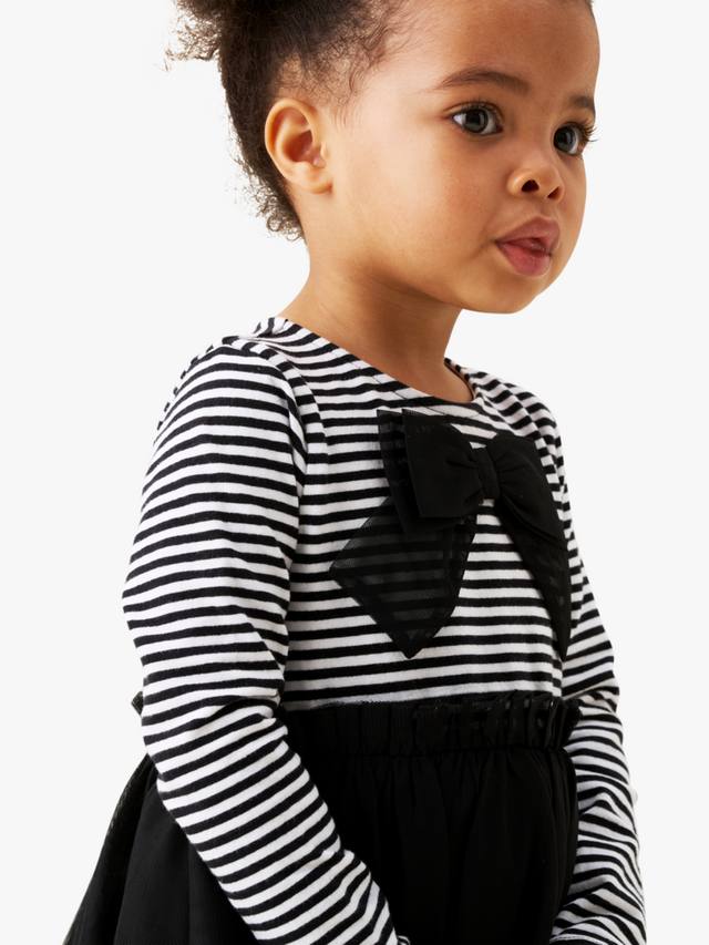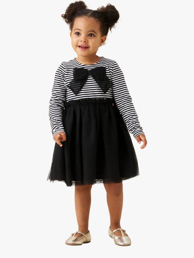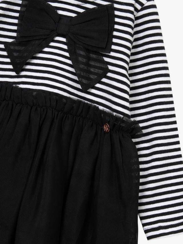 Изготовлено с супермягким полосатым трикотажным лифом, украшенным эффектным бантом, и роскошной юбкой из слоев мягкой сетки.