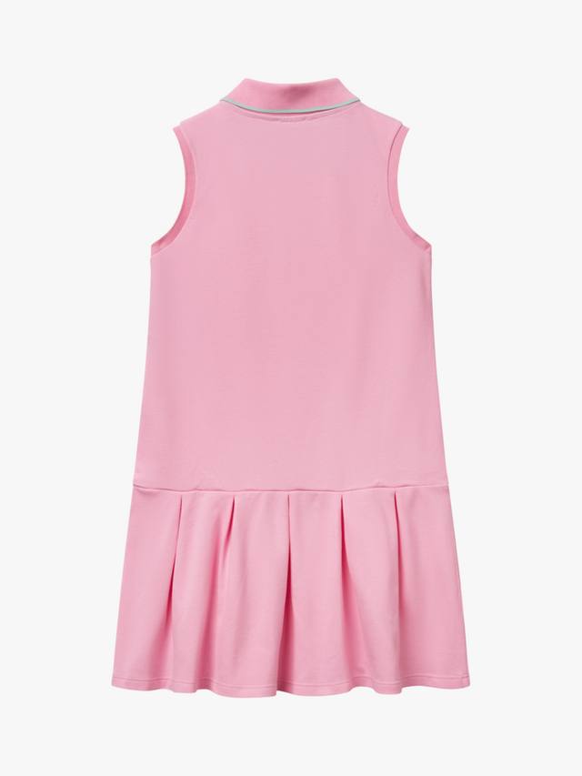 Стильное платье-поло пике без рукавов в спортивном стиле с контрастным полосатым воротником и ненавязчивым фирменным стилем.