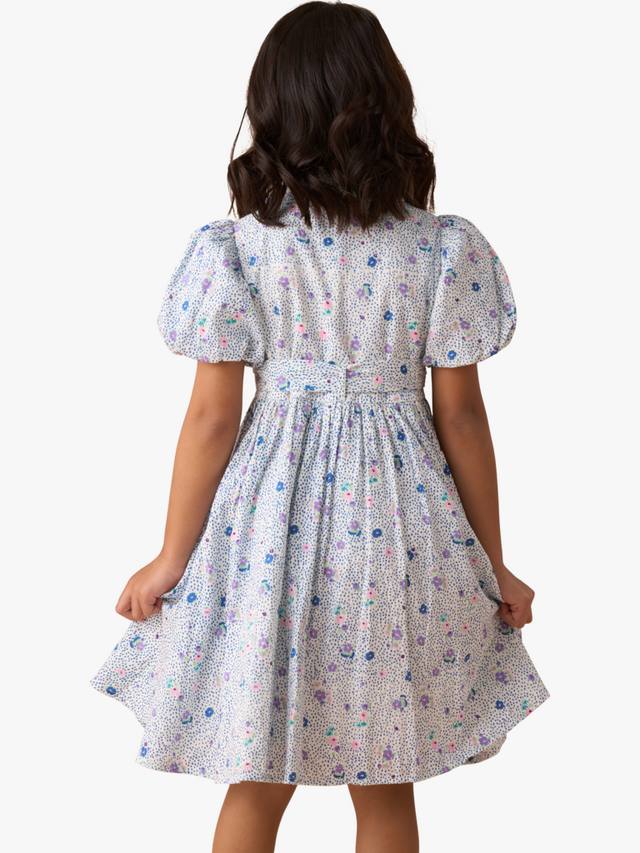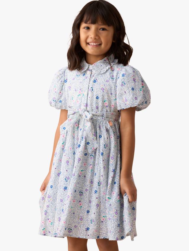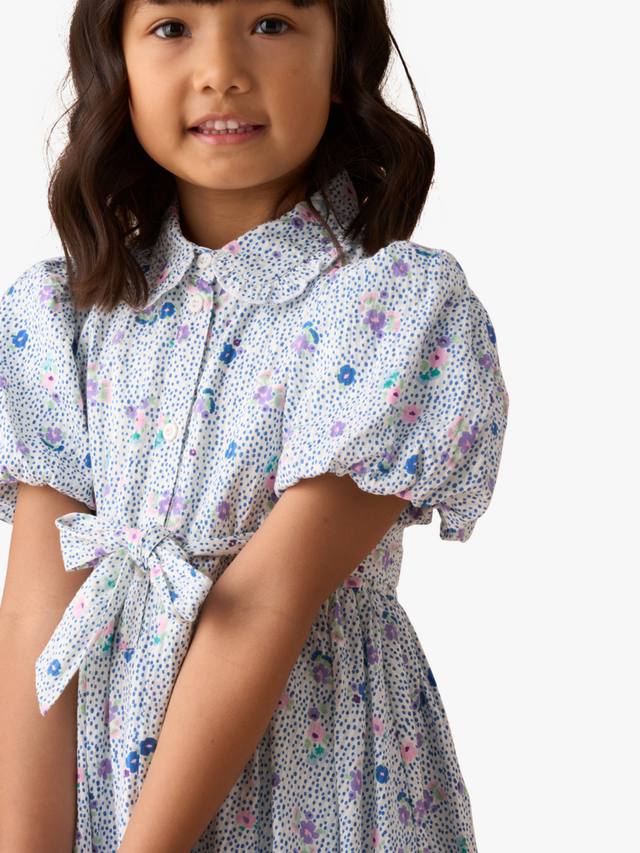 Это платье-рубашка из дышащего хлопка идеально подходит для лета. Оно имеет пышную юбку, завязку на талии и ворот с красивой оборкой. А благодаря яркому принту его можно легко надеть с сандалиями в солнечный день.