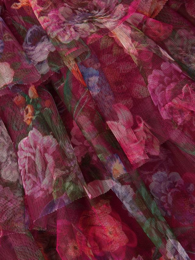 Это платье, которое, как мы знаем, понравится всем, идеально подходит для вечеринок и особых случаев. Лиф без рукавов, ярусы из тюля и красочный цветочный узор по всему платью. Застежка-молния сзади и бант на талии.