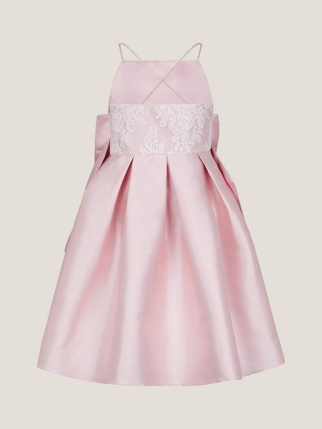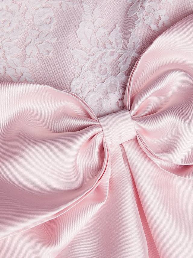 Это платье станет великолепным выбором для особых случаев: лиф с кружевом на бретелях, пышная юбка принцесса и большой бант на талии. Застежка на молнию сбоку.